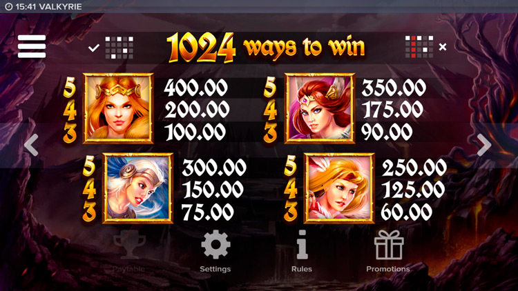Таблица выплат Valkyrie