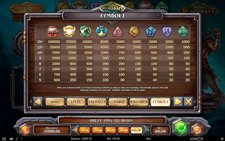 Таблица выплат Viking Runecraft