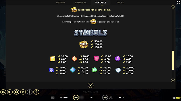 Таблица выплат Wild Drops