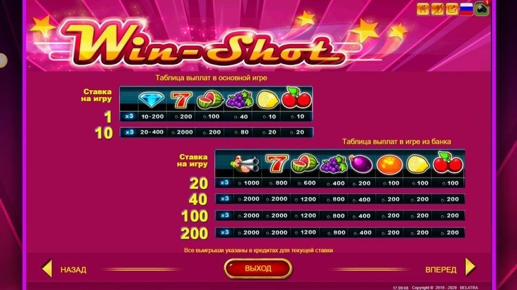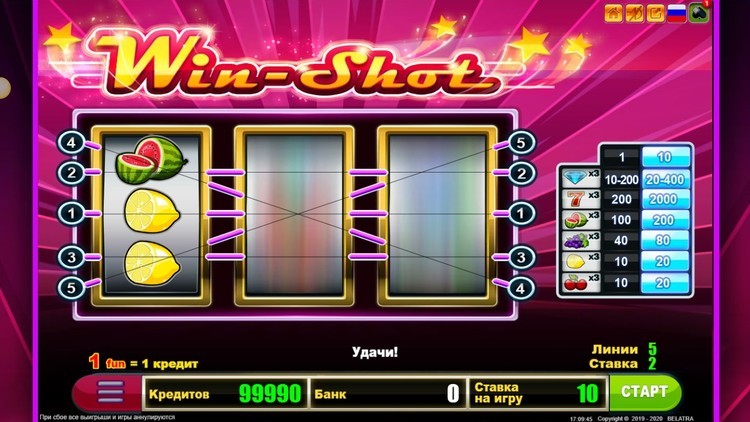 | Ставка на игру 10 | Вишни, Лимон | 20 |