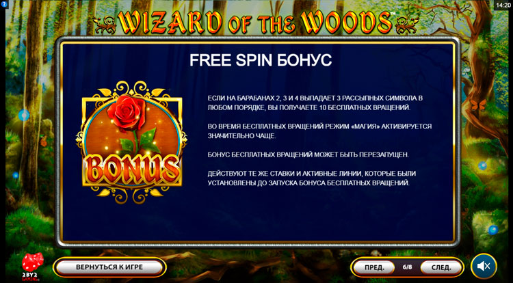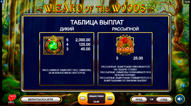 Таблица выплат Wizard of the Woods