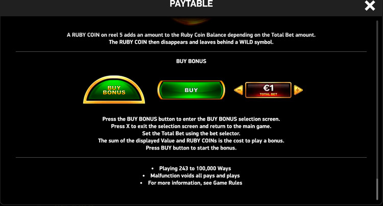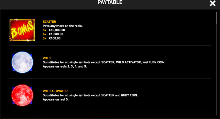 | Bonus (Scatter) | 100 | 1 000 | 10 000 |
