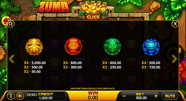 Таблица выплат Zuma