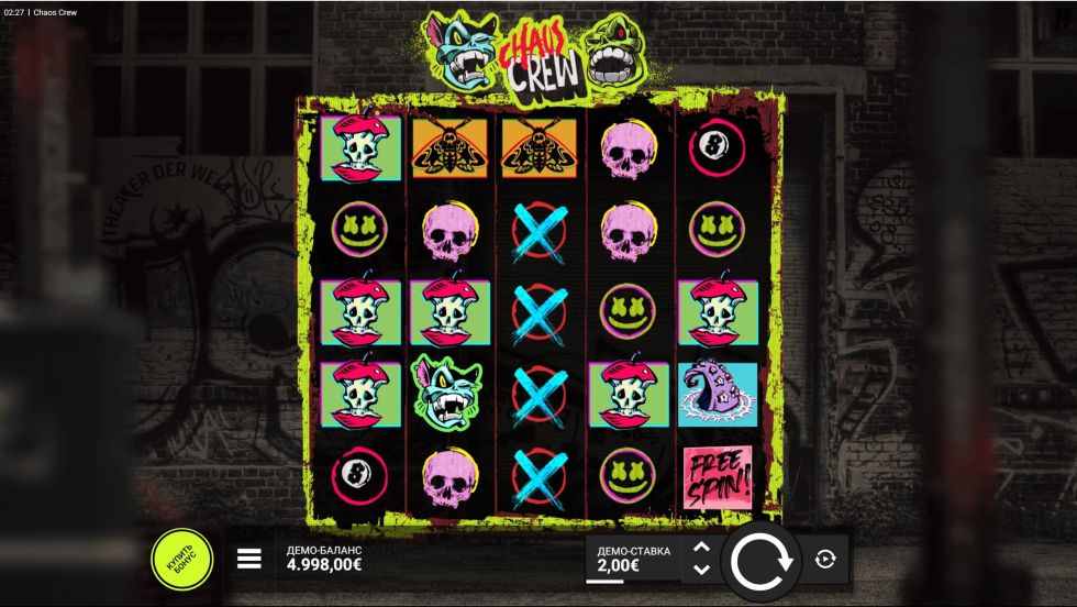 Некоторые игры посвящены искусству граффити, как, например, Chaos Crew. Невероятно непредсказуемый Chaos Crew - это бунтарский 5-барабанный, 5-рядный слот с 15 линиями выплат и огромным потенциалом выигрыша в 10 000 раз больше вашей ставки. Кроме того, он сопровождается потрясающим саундтреком, который улучшит ваши слуховые ощущения.