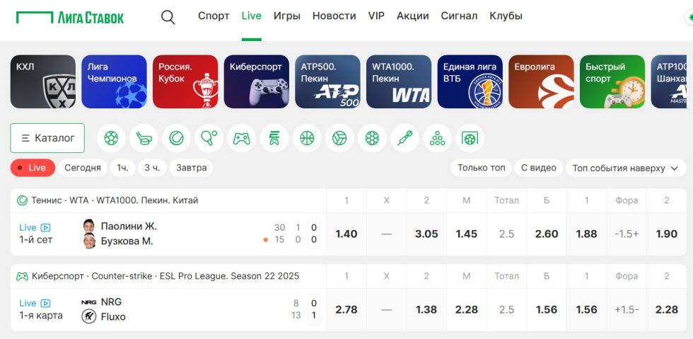 Лайв-ставки Лига Ставок — это возможность делать ставки в реальном времени по ходу спортивных событий с обновляющимися коэффициентами.