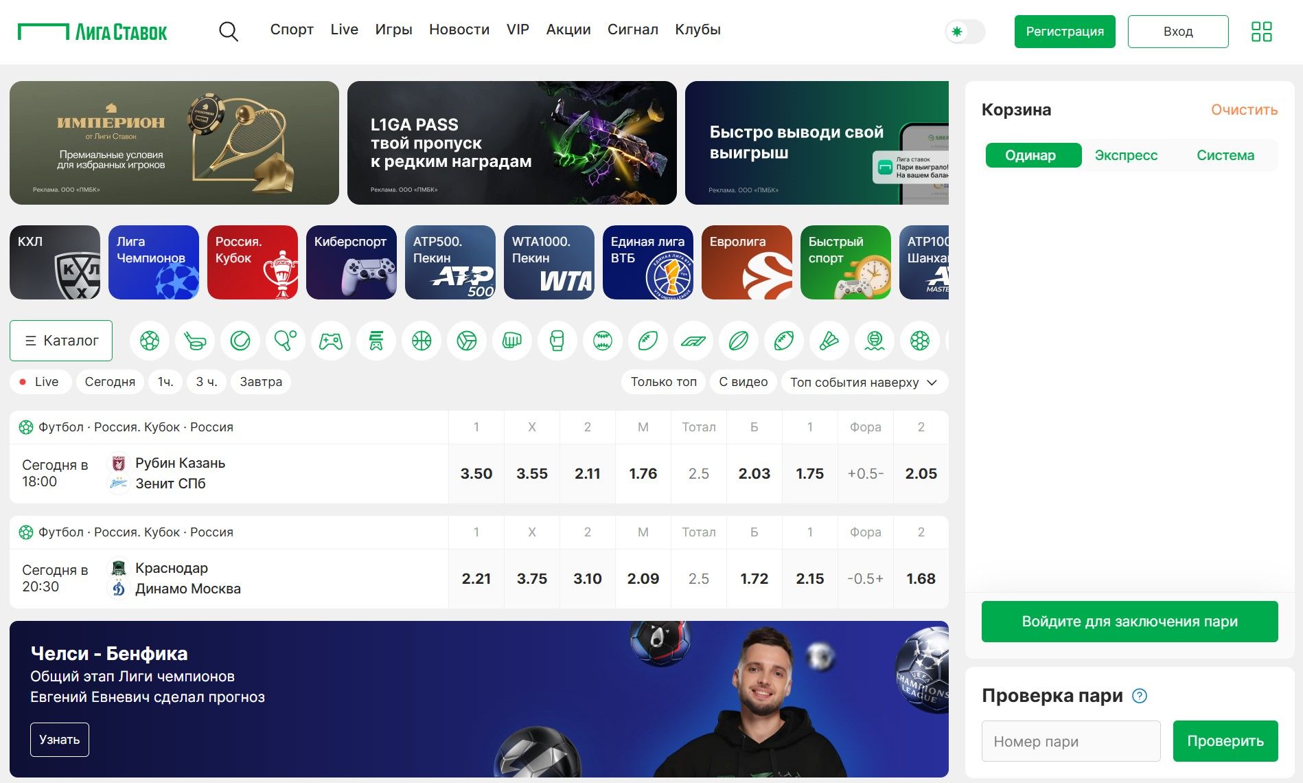 Ставки на футбол — самое популярное направление. Лига Ставок предлагает высокие коэффициенты на матчи РПЛ, еврокубков и чемпионатов мира.