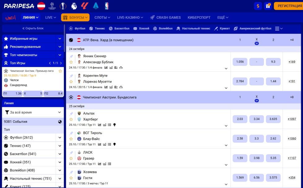 Paripesa — современная международная букмекерская платформа с хорошими коэффициентами, быстрыми выплатами и большим выбором ставок.