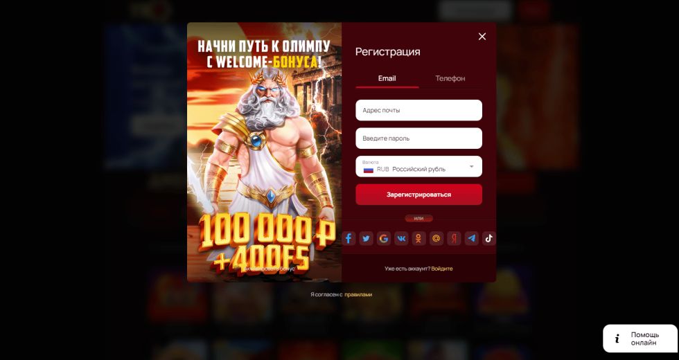 - Заполните регистрационную форму: Введите свои персональные данные, адрес электронной почты или номер телефона. А так же доступна регистрация через социальные сети.
