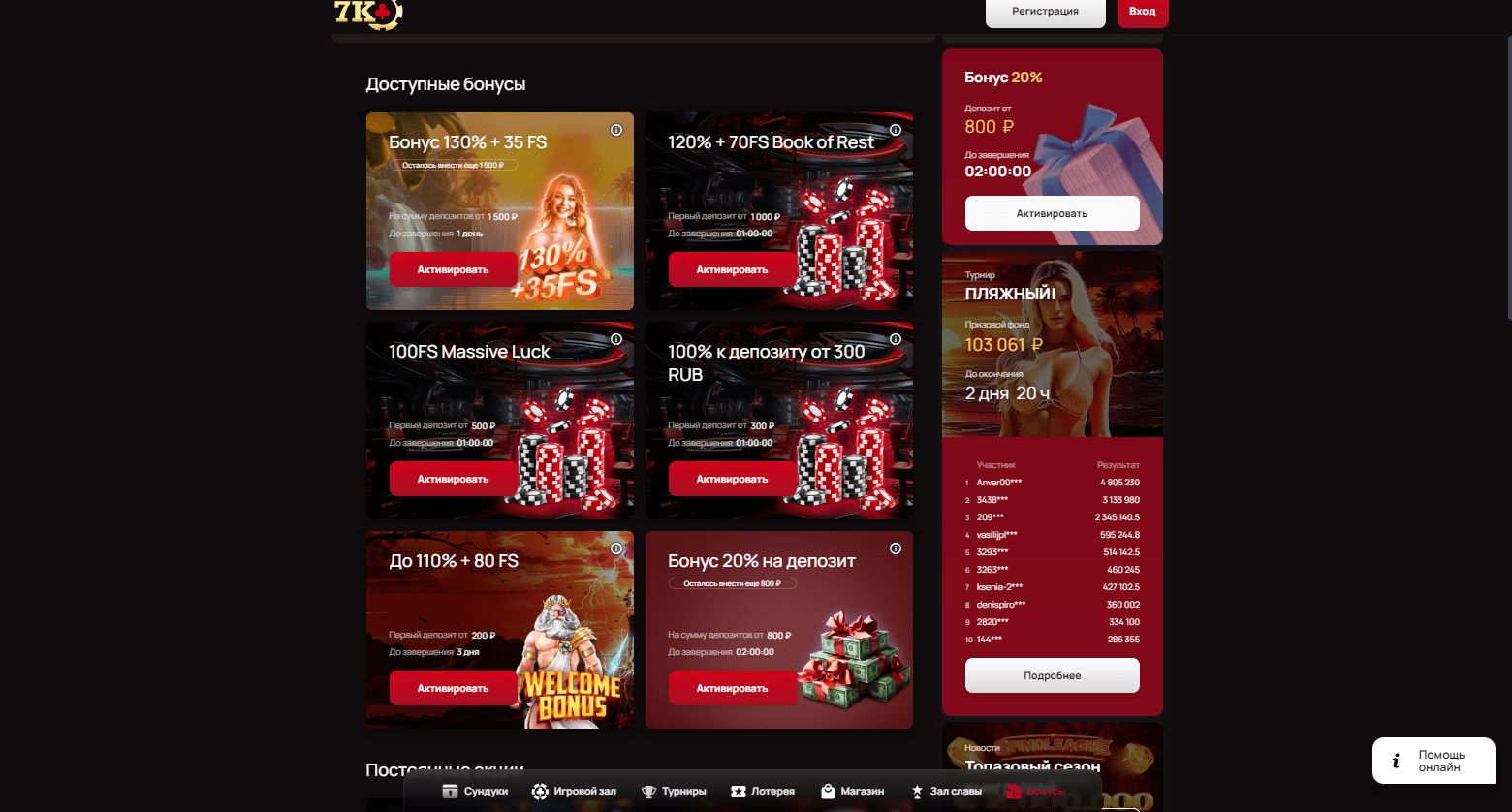 Бонусы и акции в онлайн-казино 7k Casinoк