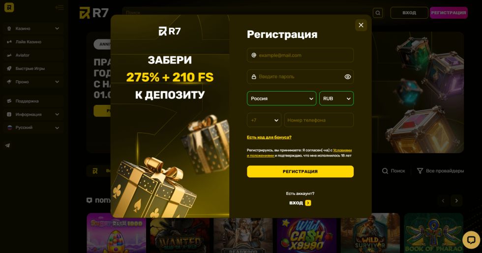 Регистрация и начало игры в r7 casino