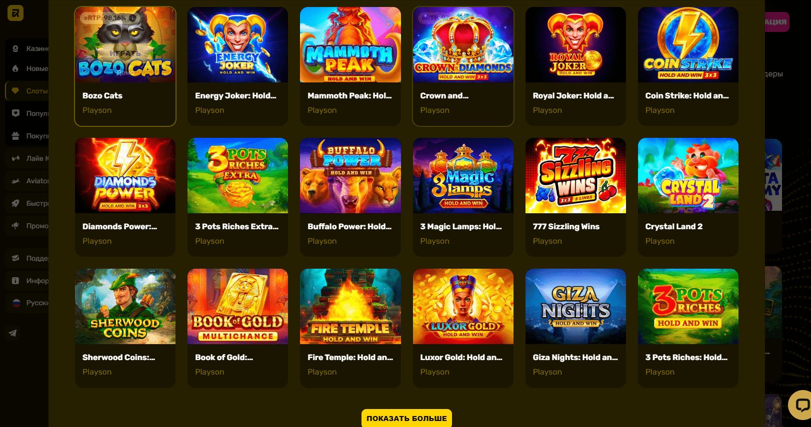 - Playson. Их слот игры всегда отличаются чем-то особенным. Игры "Солнечная королева", "Золотая книга" и "Сила буйвола" считаются одними из самых популярных, поскольку каждая из них имеет свою оригинальную тематику, яркую анимацию и интересные дополнительные элементы. Кроме того, компания организует увлекательные мероприятия, такие как Playson CashDays, которые предоставляют игрокам возможность выиграть крупные призы. Благодаря неизменному стремлению Playson к качеству и вовлечению игроков, компания получила заслуженную репутацию ведущего поставщика в сфере онлайн-казино.