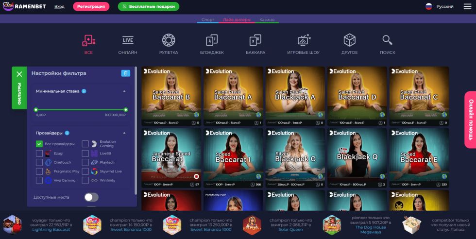 Ramenbet предлагает богатое многообразие режимов, включая различные слоты, настольные режимы и режимы с настоящими дилерами. Такое разнообразие позволяет удовлетворить потребности всех пользователей.
