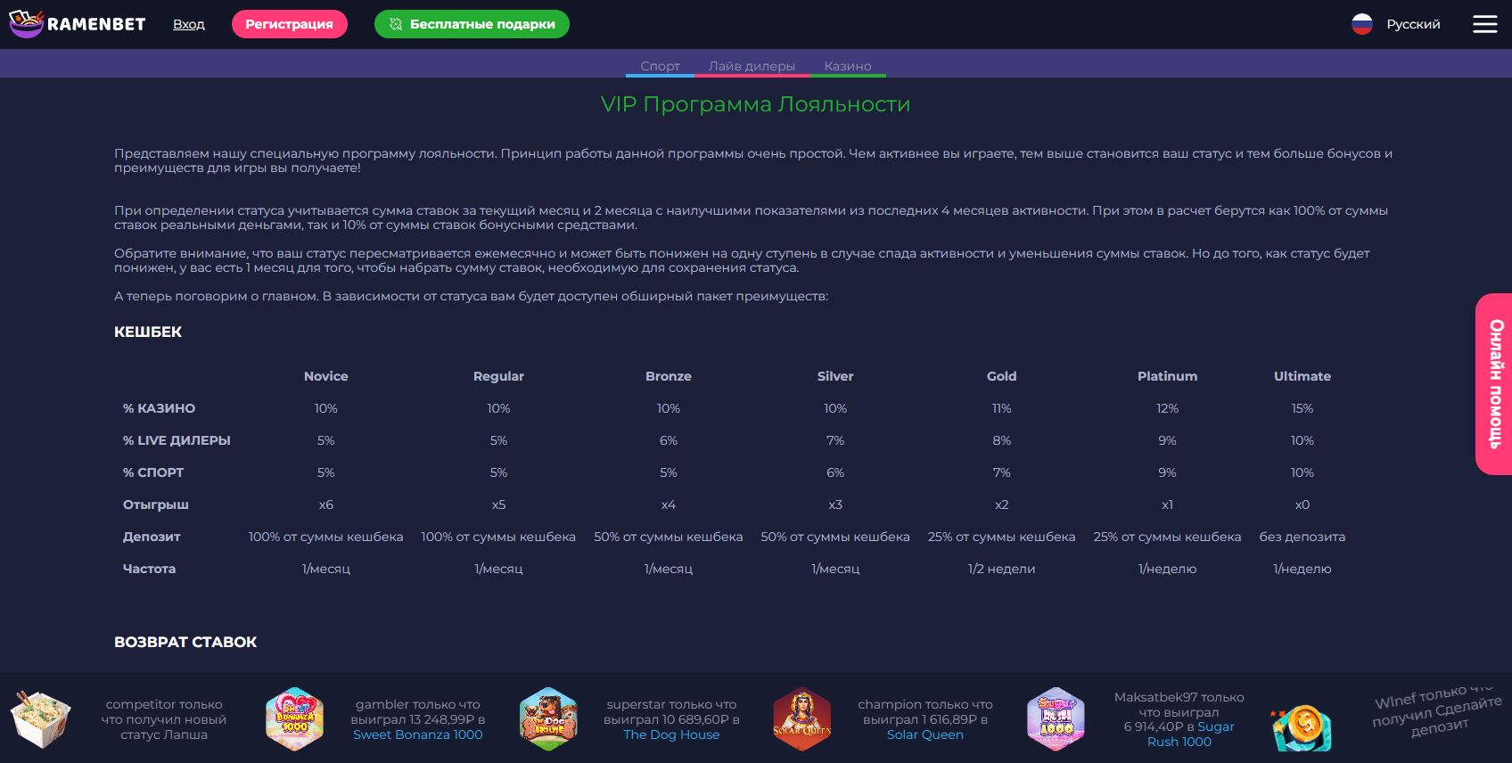 Ramenbet предлагает своим пользователям привлекательную статусную систему, включающую начисление очков за активность, различные уровни и эксклюзивные привилегии для VIP-клиентов