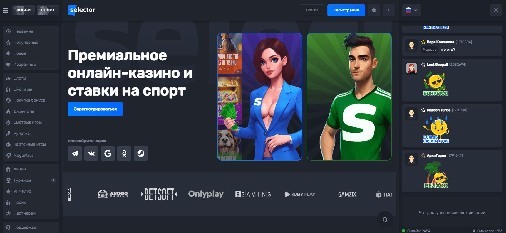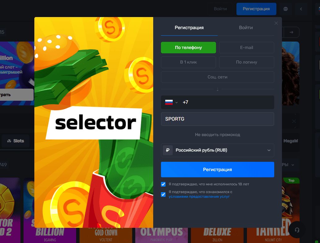 Регистрация в Selector Casino