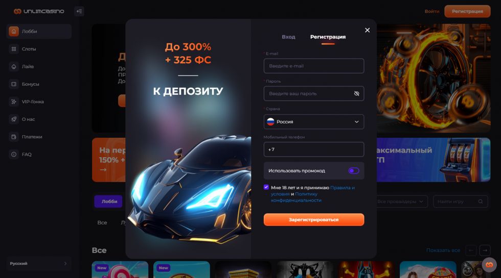 - В появившемся модальном окне появится форма регистрации, где нужно заполнить: